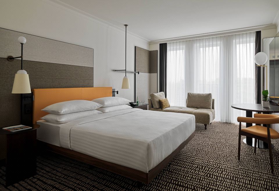 下榻柏林万豪酒店,获享德国豪华住宿之旅。柏林万豪酒店客房悦享时尚设计,地处活力四射的市中心,以现代手法匠心诠释包豪斯风格。体验如居家般舒适的客房与套房,配备新颖平台式睡床、先进客房娱乐系统,并设有节能环保且洁净衞生的循环空调设备。客房提供免费无线上网,方便您随时与外界保持联系,另有数字节目让您悠享娱乐时光。私人浴室配备浴缸或淋浴间,并提供免费衞浴用品与吹风机。Midtown Grill美式餐厅在开放式展示厨房烹制上等牛排,而柏林The Big Dog餐厅则供应创意热狗与美味薯条。纵享大堂酒廊休闲氛围,享用饮品与自制糕点。酒店位於波茨坦广场,邻近勃兰登堡门,便捷通达市内人文历史地标。酒店提供室内泳池、芬兰桑拿、红外线座椅,还有配备先进设备的24小时健身中心,供宾客放松健身。氛围温馨的行政酒廊是一处雅致休憩之所,坐拥一览无余的城景,供应精选餐饮,为办公或休闲提供宁静空间。探索柏林万豪酒店的多功能会议与活动场地。我们提供多处布置灵活、现代便利的空间,满足您的各类活动需求。